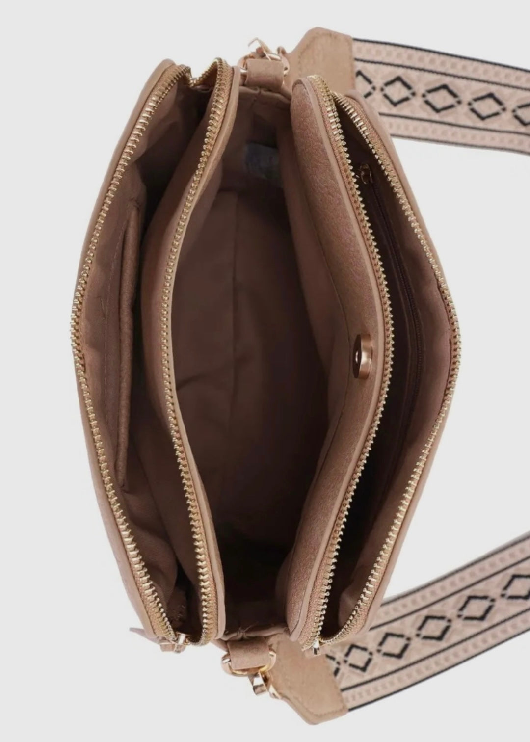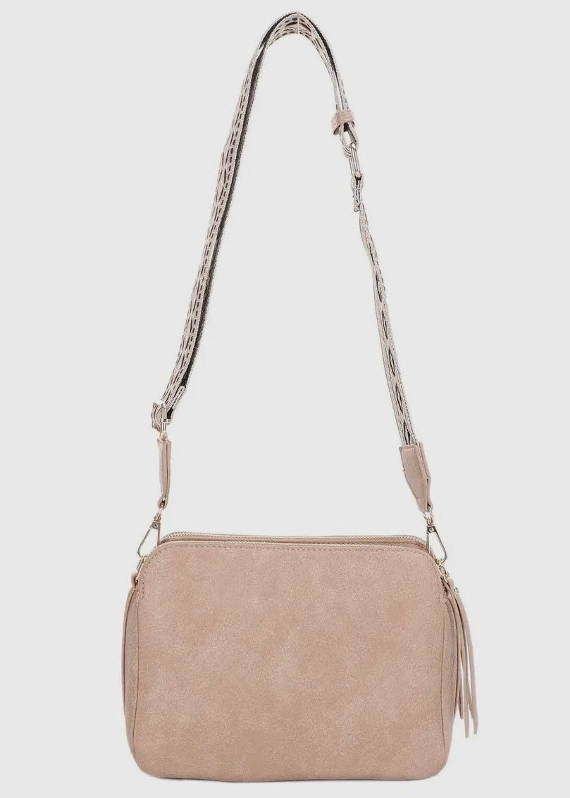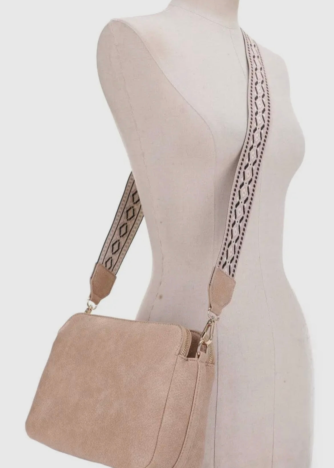 Expertly crafted with a stylish design, the Blake Crossbody Bag is both fashionable and functional. Its 3 compartments, gold hardware, and inside pockets make it the perfect accessory for any outfit. The adjustable strap allows for hands-free convenience on the go. Measurements: 9.5" x 3.75" x 7.25".