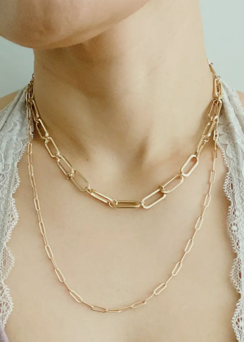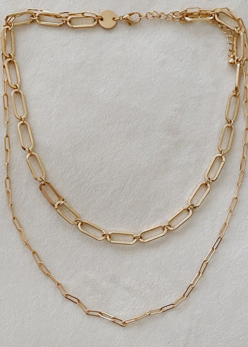 Be on trend with our beautiful double chain link necklace in worn gold measuring 16inch, 20 inch and 3 inch extension.