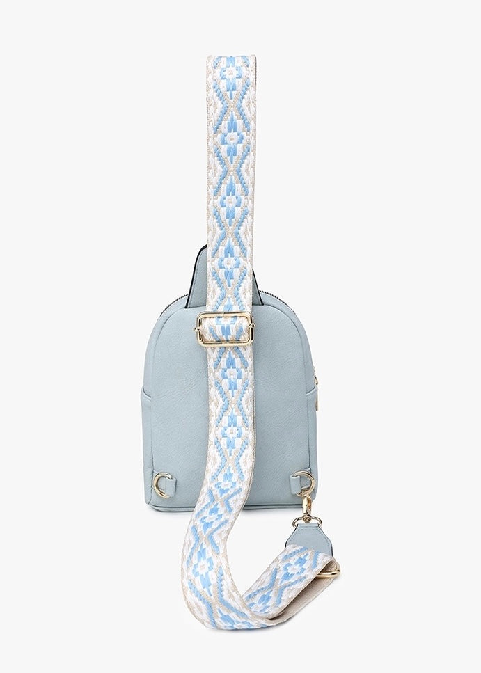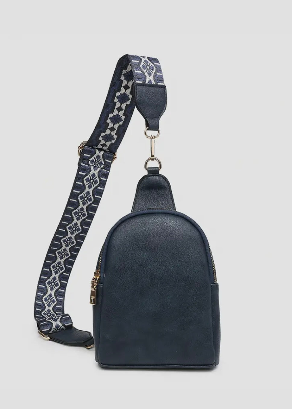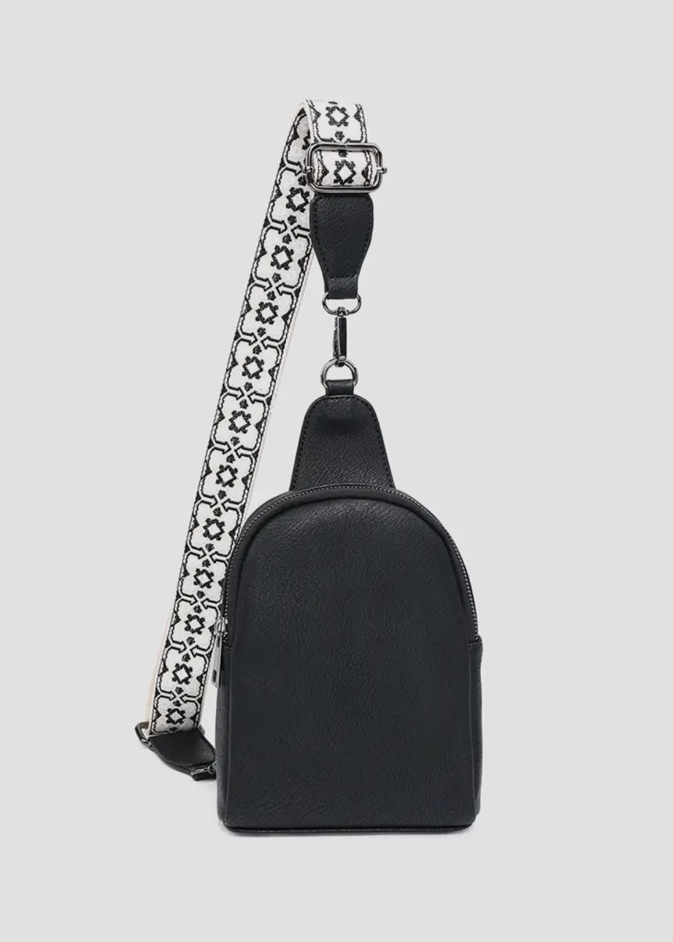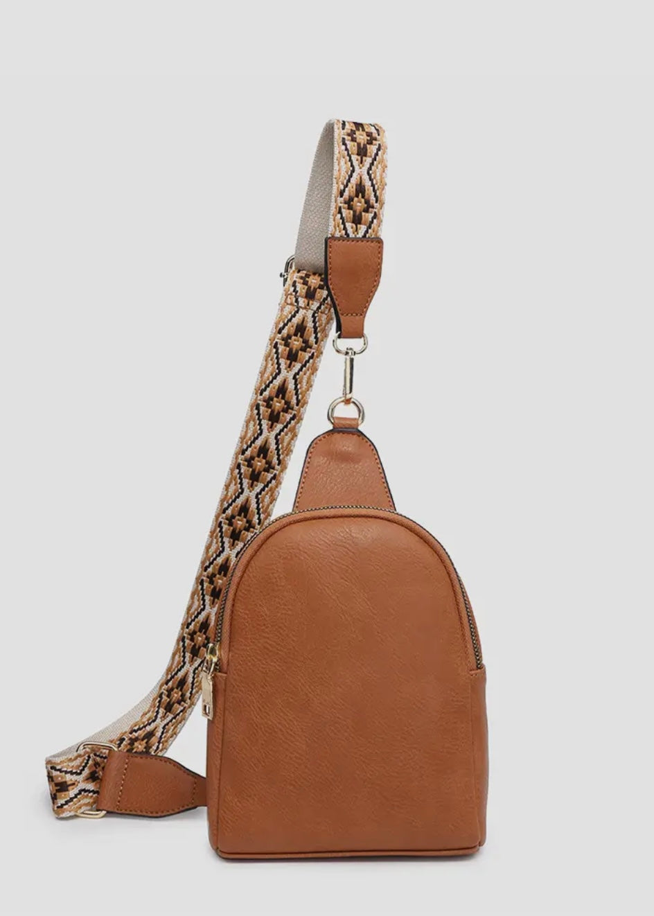 Introducing the Ela Sling Bag, made from high-quality vegan leather. This compact bag features an adjustable/removable guitar strap and a secure zip closure. With versatile carrying options and a compact design, it's perfect for any occasion. Expertly crafted for style and convenience.