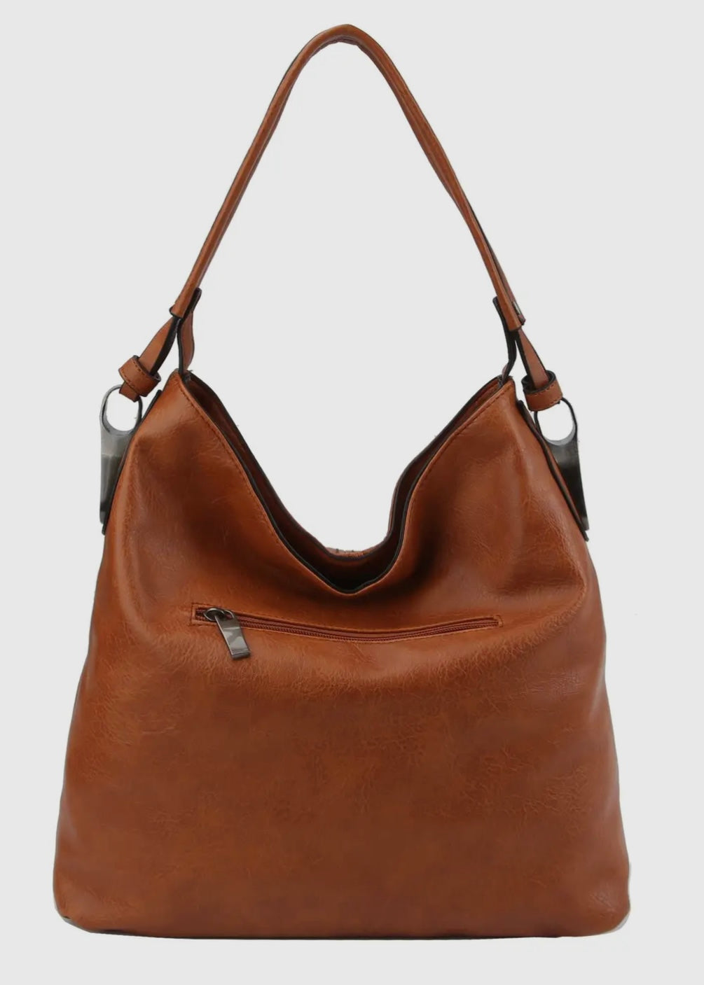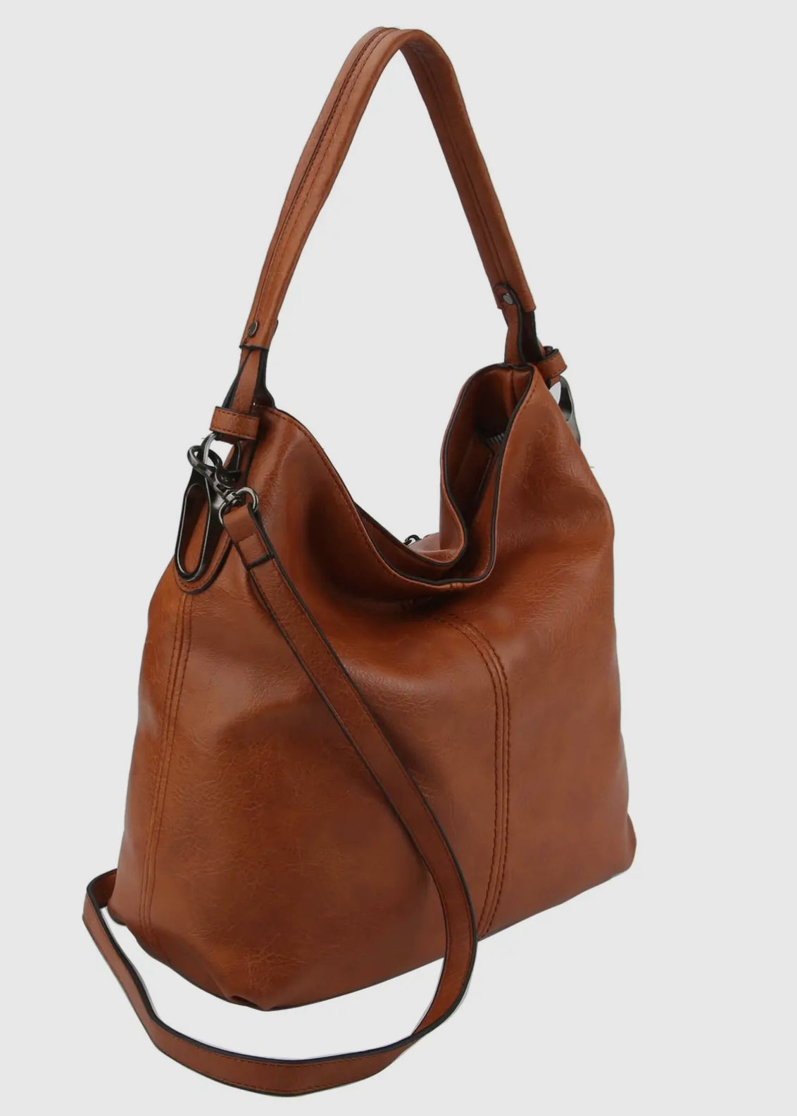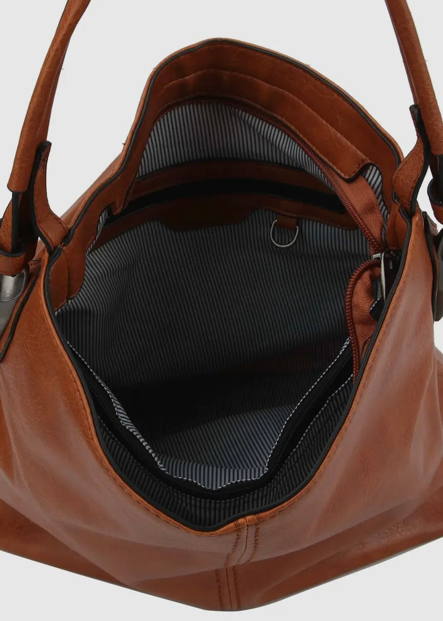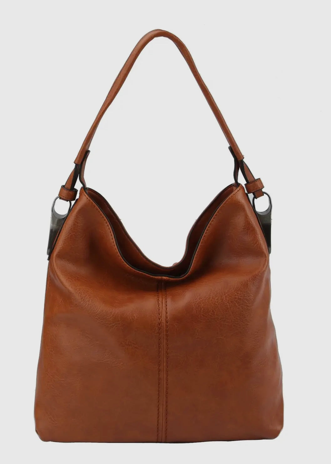 Carry your essentials in style with our Hobo Bag! Its classic design is elevated with unique side metal accents, striking the perfect balance between timeless and modern. With a zipper top closure and multiple pockets, it's as functional as it is fashionable. Plus, the detachable shoulder strap offers versatility. Dimensions: 16'' L x 5.5'' D x 13'' H.
