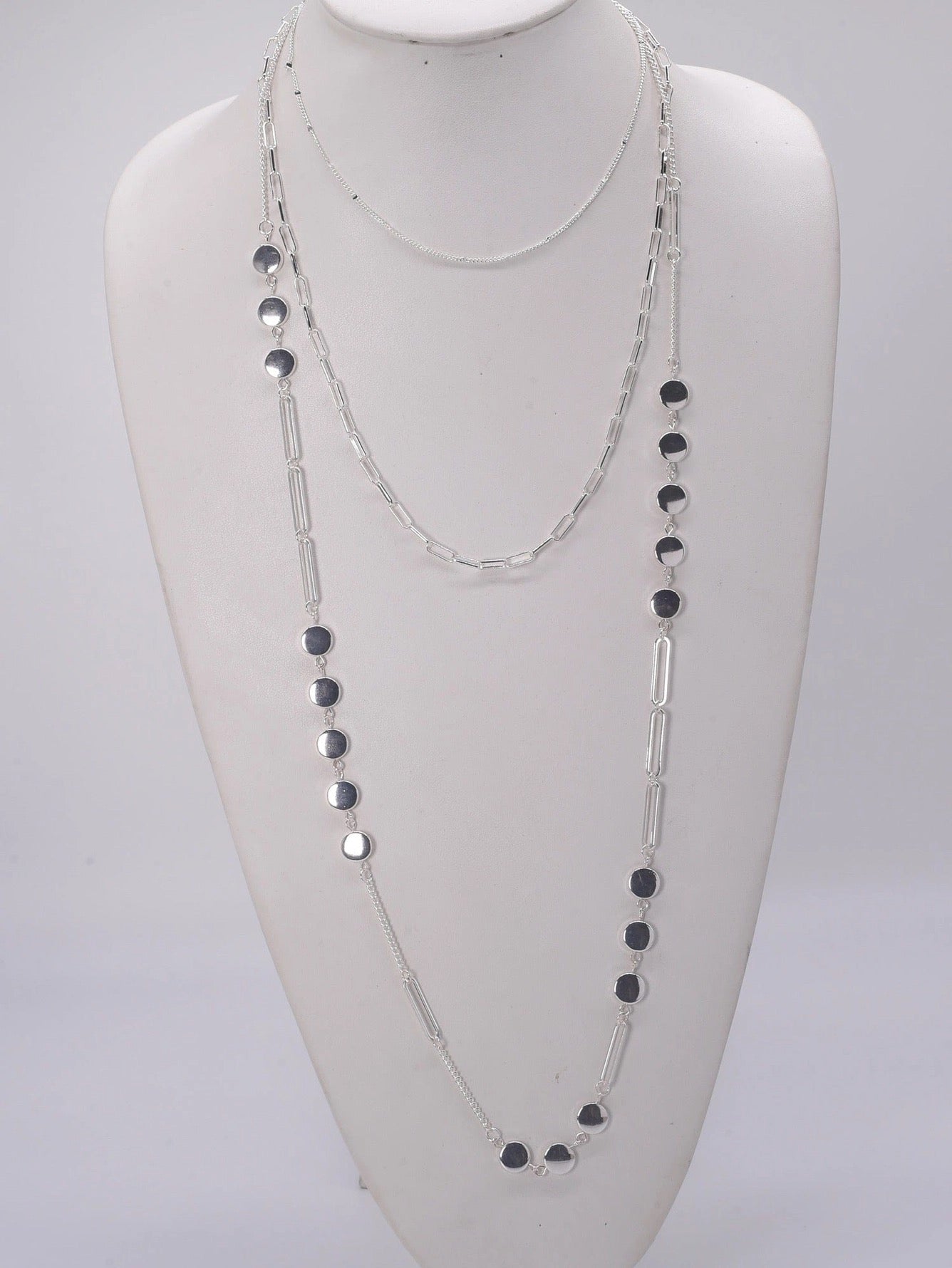 Add some layers to your look with the Disc Layered Necklace. This necklace adds a touch of chic to any outfit with its unique design and three layers.
