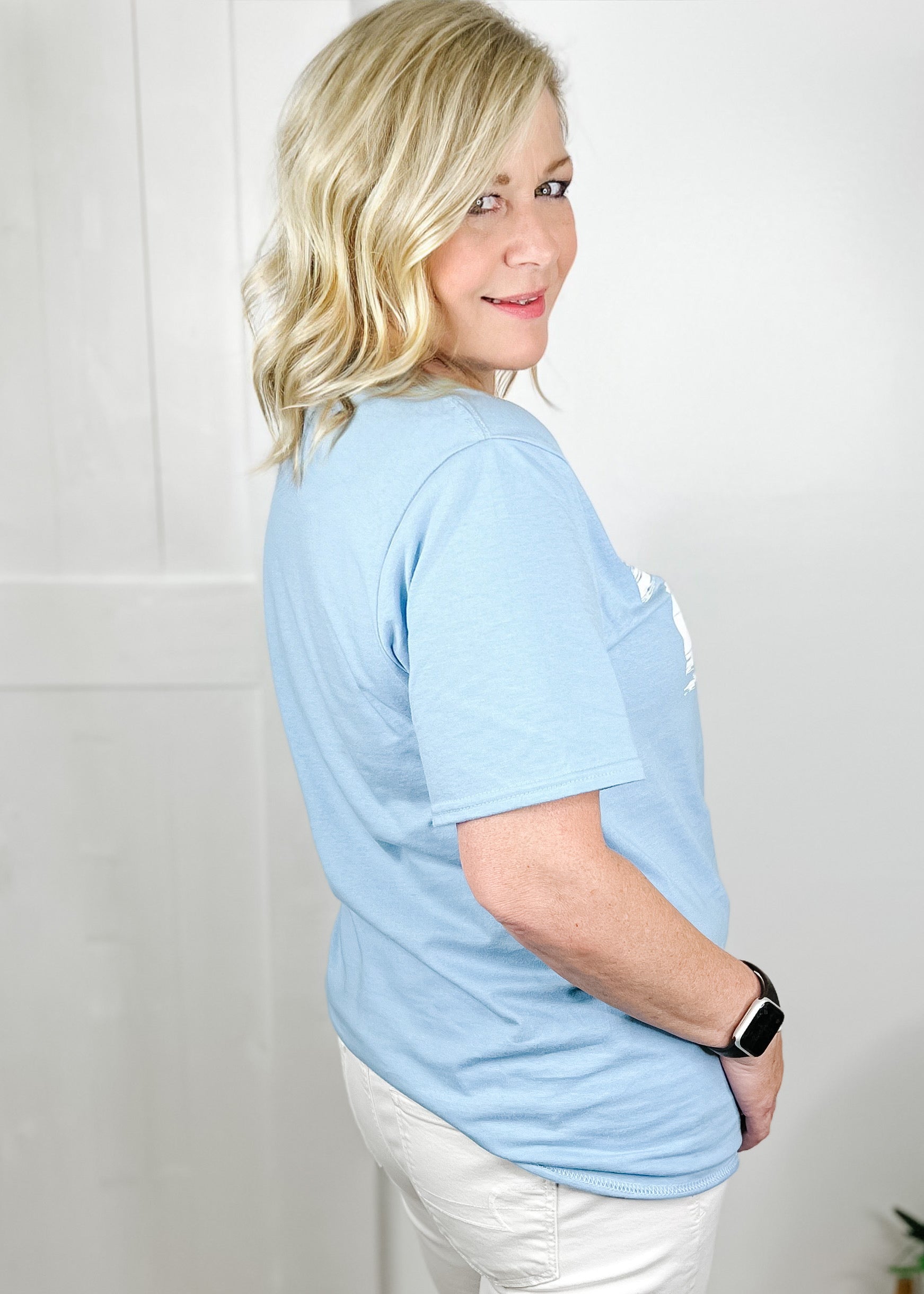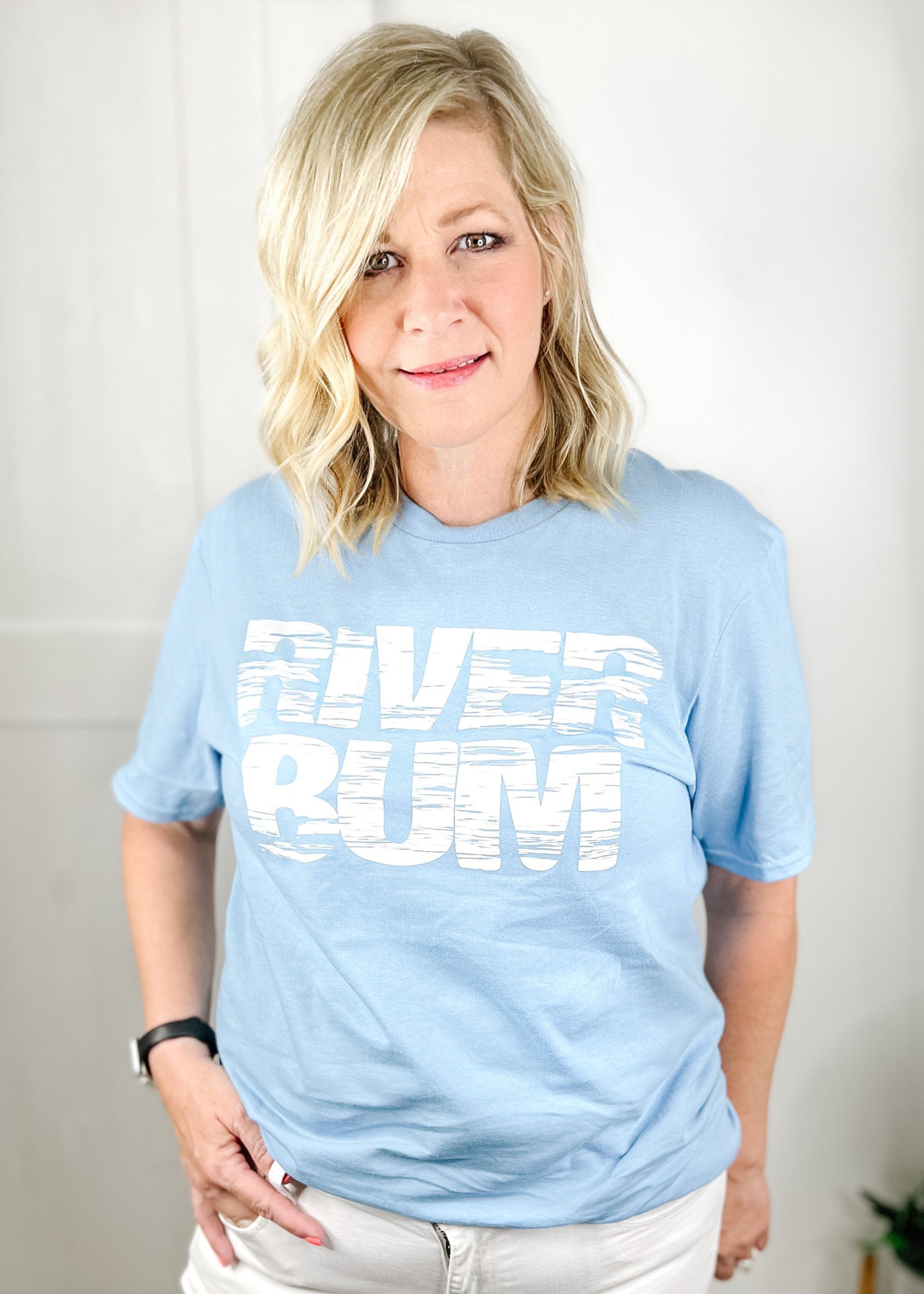 River Bum Gildan brand tee in a unisex fit. Some tees have slight difference in blues.